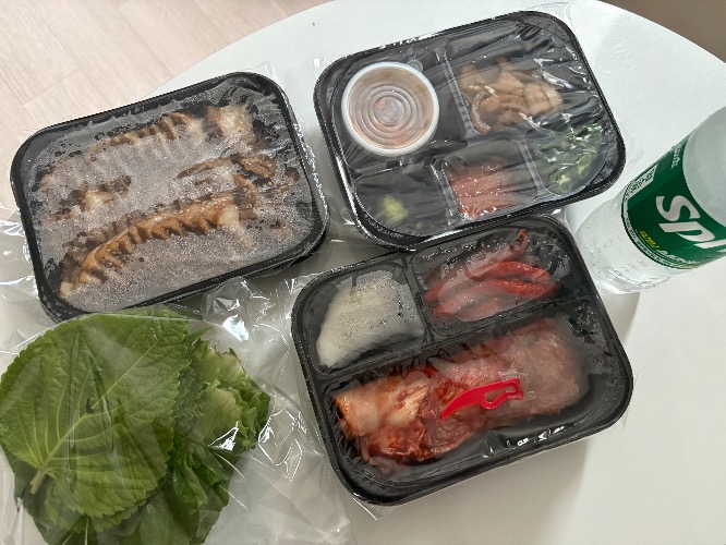 맛보쌈소를 포장해왔다.